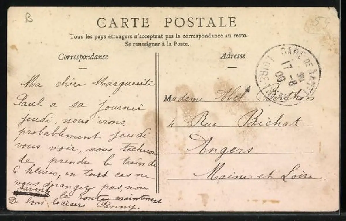 gelaufen 1908, minimaler Eckschaden li. oben, Abriebspur re. oben, guter Zustand