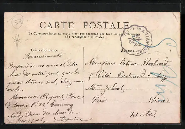Personenbezogene Daten auf der Rückseite der Karte wurden durch blauen Textmarker unkenntlich gemacht. Die blauen Stellen sind auf die Vorderseite durchgeweicht und wirken sich negativ auf das Postkartenfoto aus