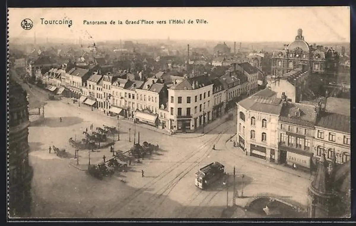 AK Tourcoing, Marktplatz mit Strassenbahn
