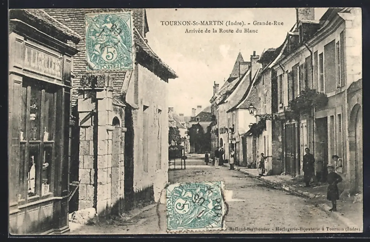 AK Tournon-St-Martin /Indre, Grande-Rue, Arrivée de la Route du Blanc, Strassenpartie