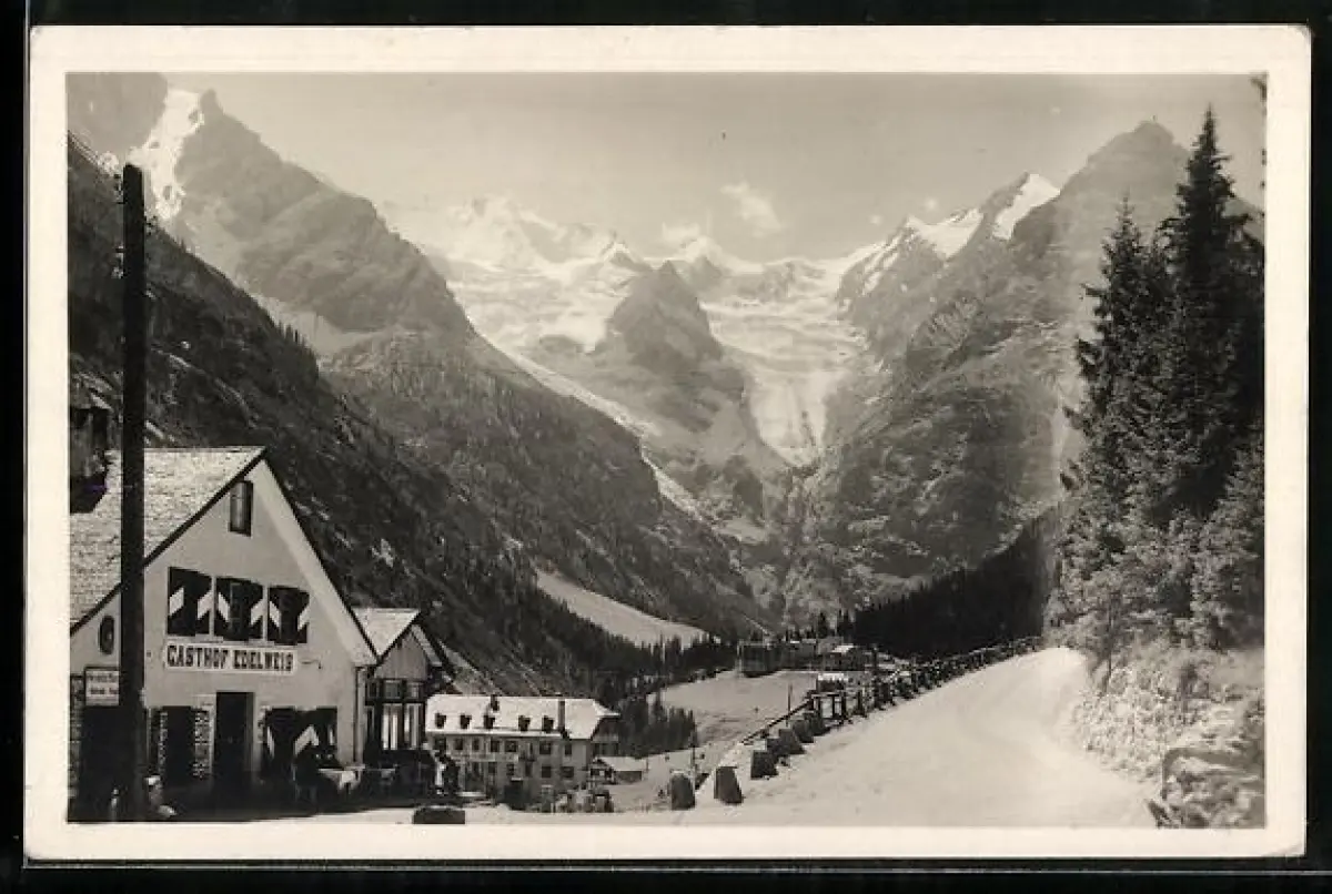AK Trafoi, Gasthof Edelweis mit Gebirgspanorama