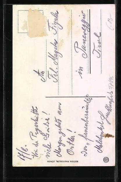 alte Ansichtskarte, gelaufen, Briefmarke entfernt, rückseitig Oberflächenschaden, Stempelspur, guter Zustand
