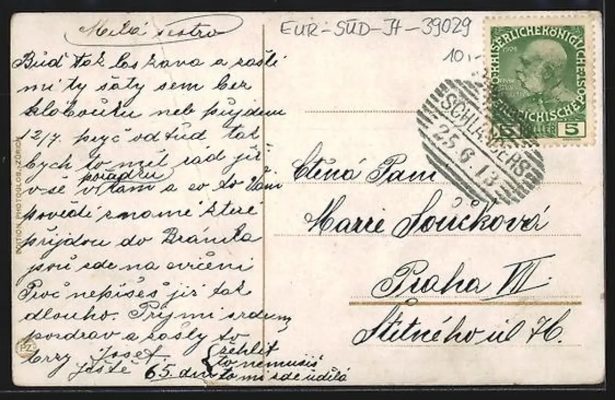 alte Ansichtskarte, gelaufen 1913, Bugspur diag. oben re., guter Zustand