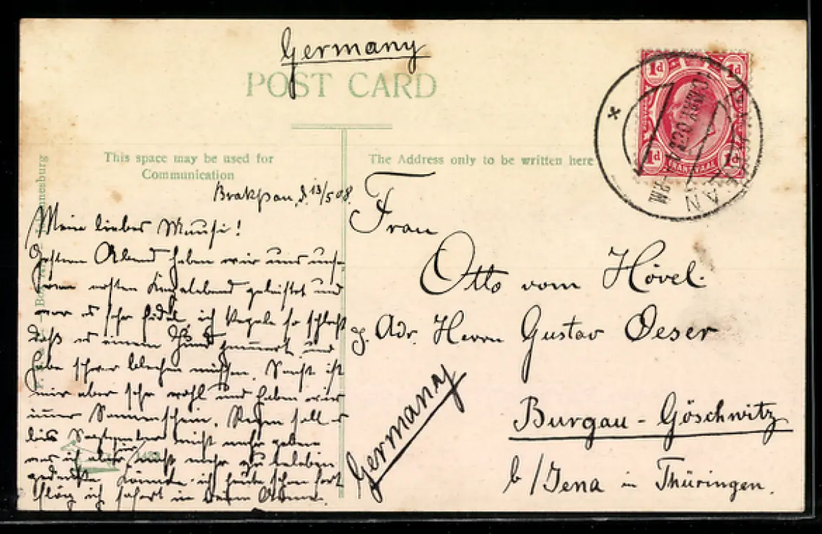 alte Ansichtskarte, gelaufen 1908, guter Zustand
