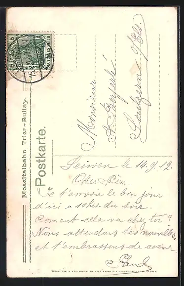 gelaufen 1912, guter Zustand