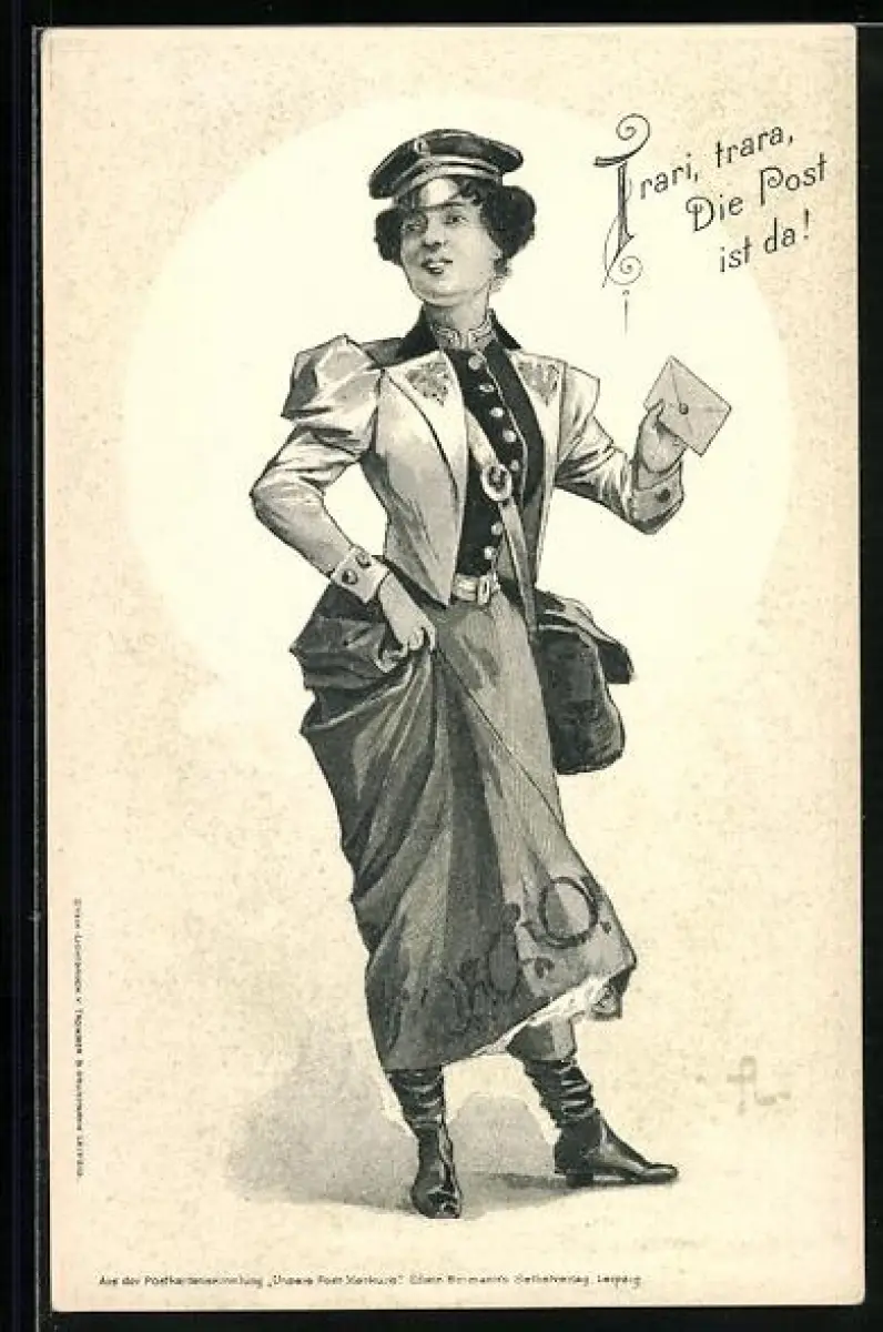 AK Trari, trara, die Post ist da!, Briefträgerin