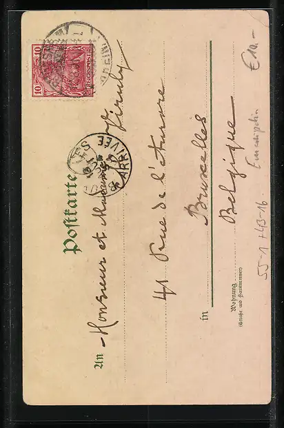 gelaufen 1901, Eckknick oben li., guter Zustand