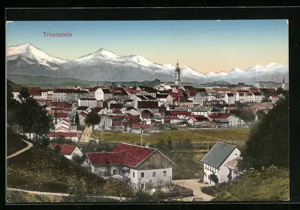 AK Traunstein, Ortsansicht aus der Vogelschau