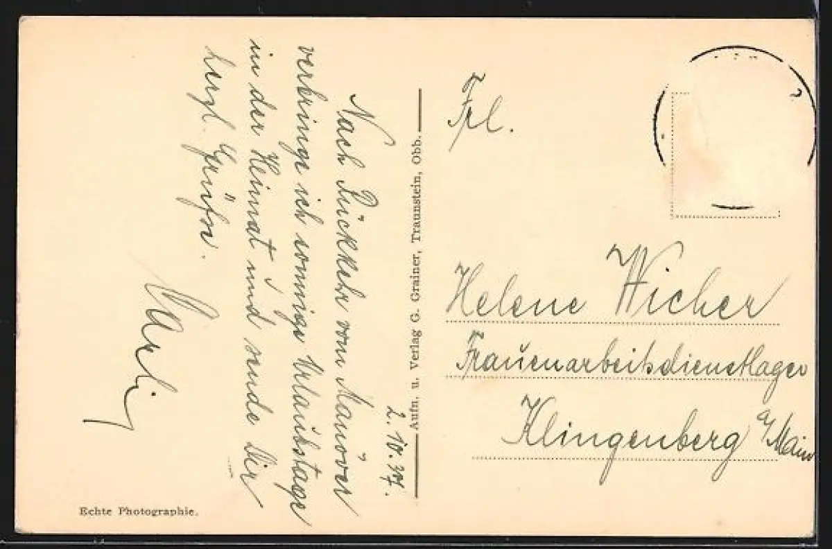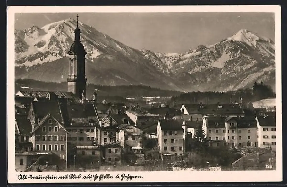 AK Traunstein, Ortsansicht mit Bergpanorama