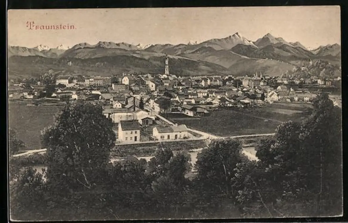 AK Traunstein, Panoramaansicht des Ortes mit Alpen im Hintergrund