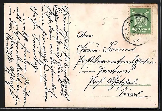 alte Ansichtskarte, gelaufen, Eckknicke li. oben, Stempelspur, guter Zustand