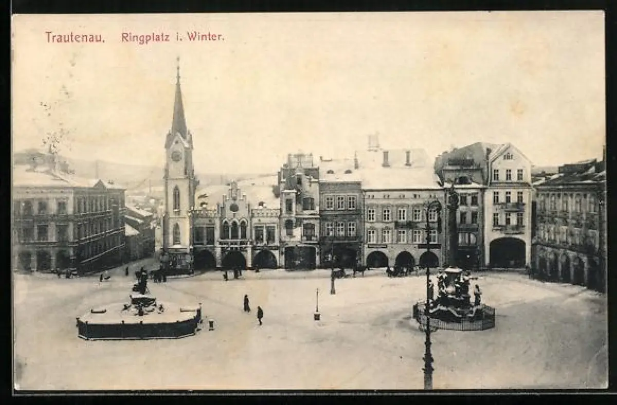 AK Trautenau, Ringplatz im Winter