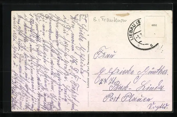 alte Ansichtskarte, gelaufen, Briefmarke entfernt, Eckknick oben links, guter Zustand