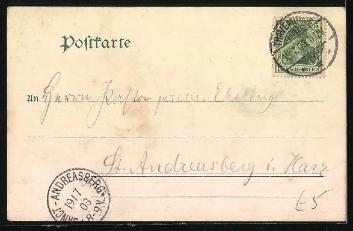 alte Ansichtskarte, gelaufen 1903, Eckknicke links, guter Zustand