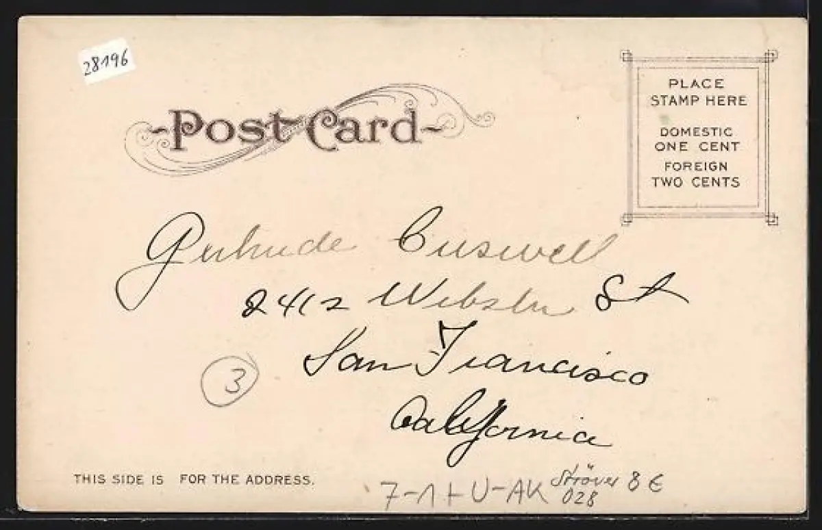 alte Ansichtskarte, ungelaufen, rückseitig Klebe- und Papierreste, guter Zustand