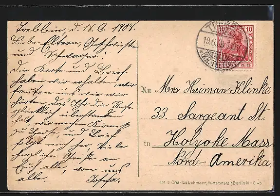 alte Ansichtskarte, gelaufen 1908, guter Zustand