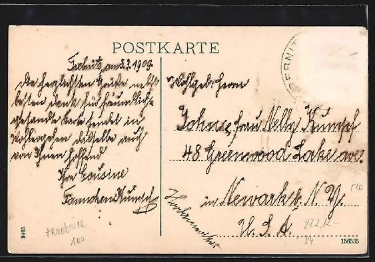 alte Ansichtskarte, gelaufen, Briefmarke entfernt, Eckknick li. unten, guter Zustand