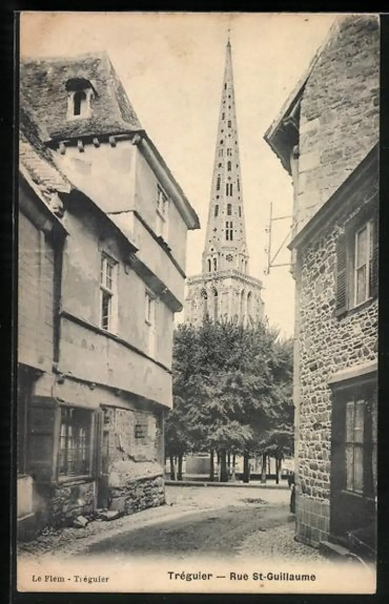 AK Tréguier, Rue St-Guillaume avec vue sur le clocher de la cathédrale