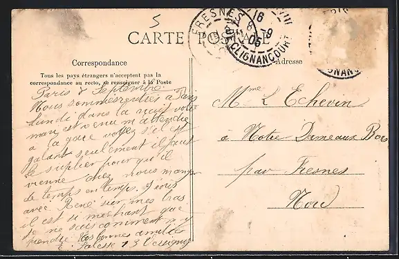 gelaufen 1905, Briefmarke entfernt, guter Zustand