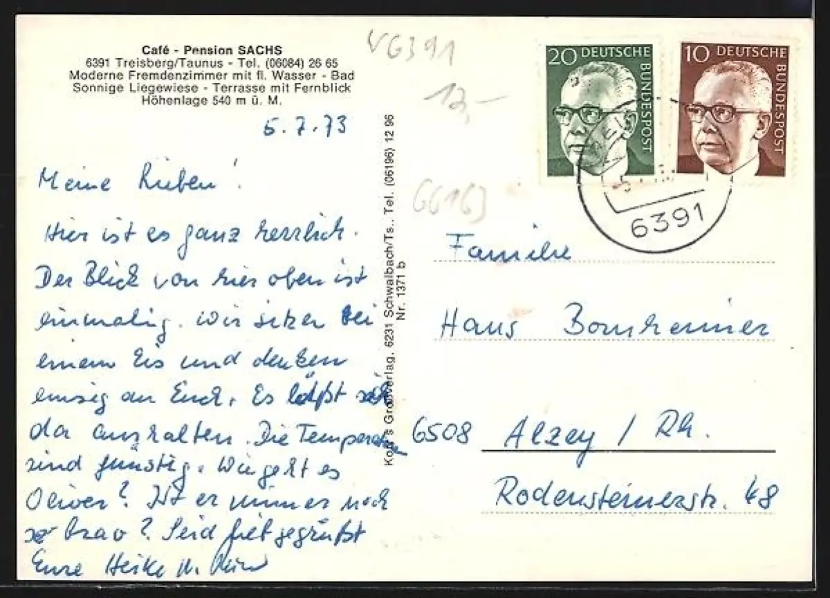AK Treisberg /Hochtaunus, Cafe-Pension Sachs, Ortsansicht, Waldpartie