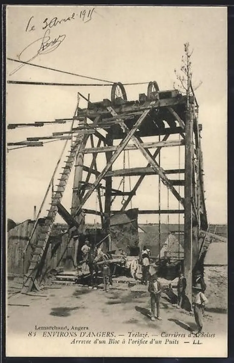 AK Trélazé, Carrières d`ardoises, Arrivée d`un bloc à l`orifice d`un puits