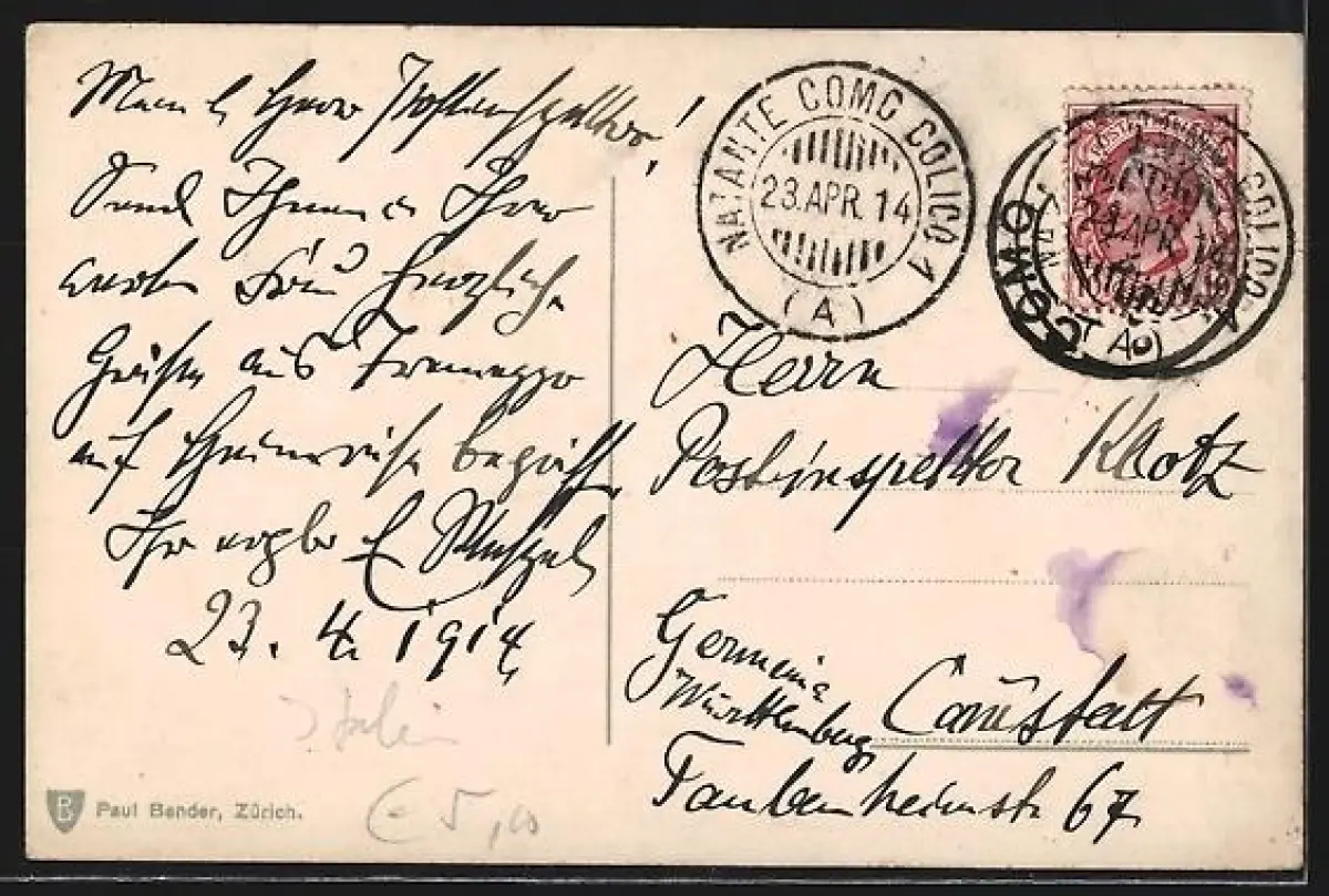 alte Ansichtskarte, gelaufen 1914, Stempelspur, guter Zustand