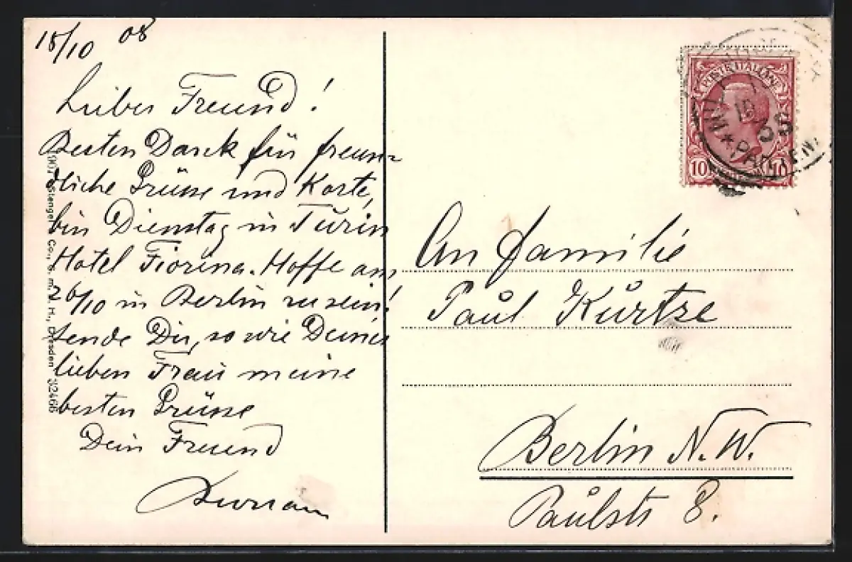 alte Ansichtskarte, gelaufen 1908, Stempelspur, guter Zustand