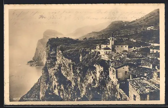 AK Tremosine sul Garda, Ortspanorama mit Kirche am Hochufer