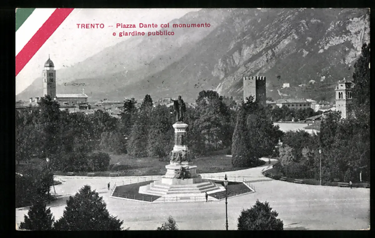AK Trento, Piazza Dante col monumento e giardino pubblico