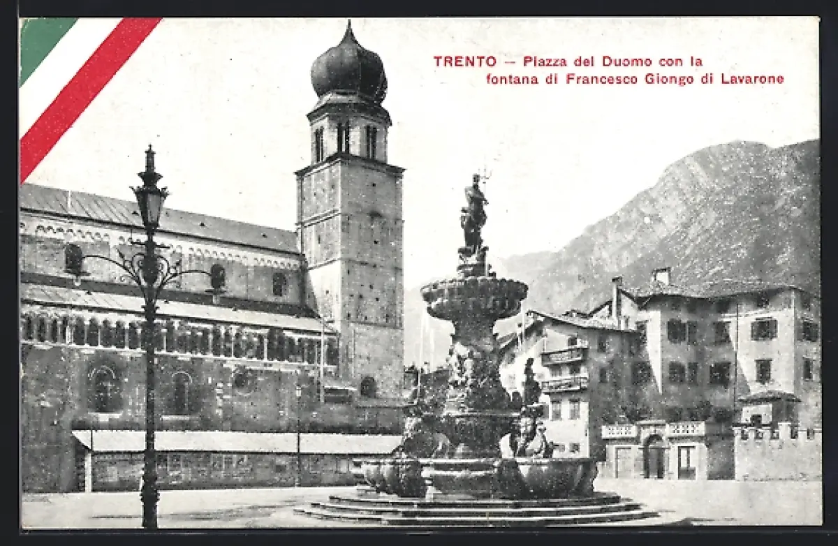 AK Trento, Piazza del Duomo con la fontana di Francesco Giongo di Lavarone