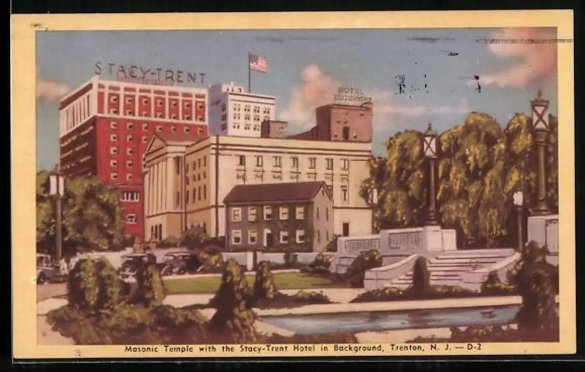 AK Trenton, NJ, Masonic Temple with the Stacy-Trent Hotel in Background