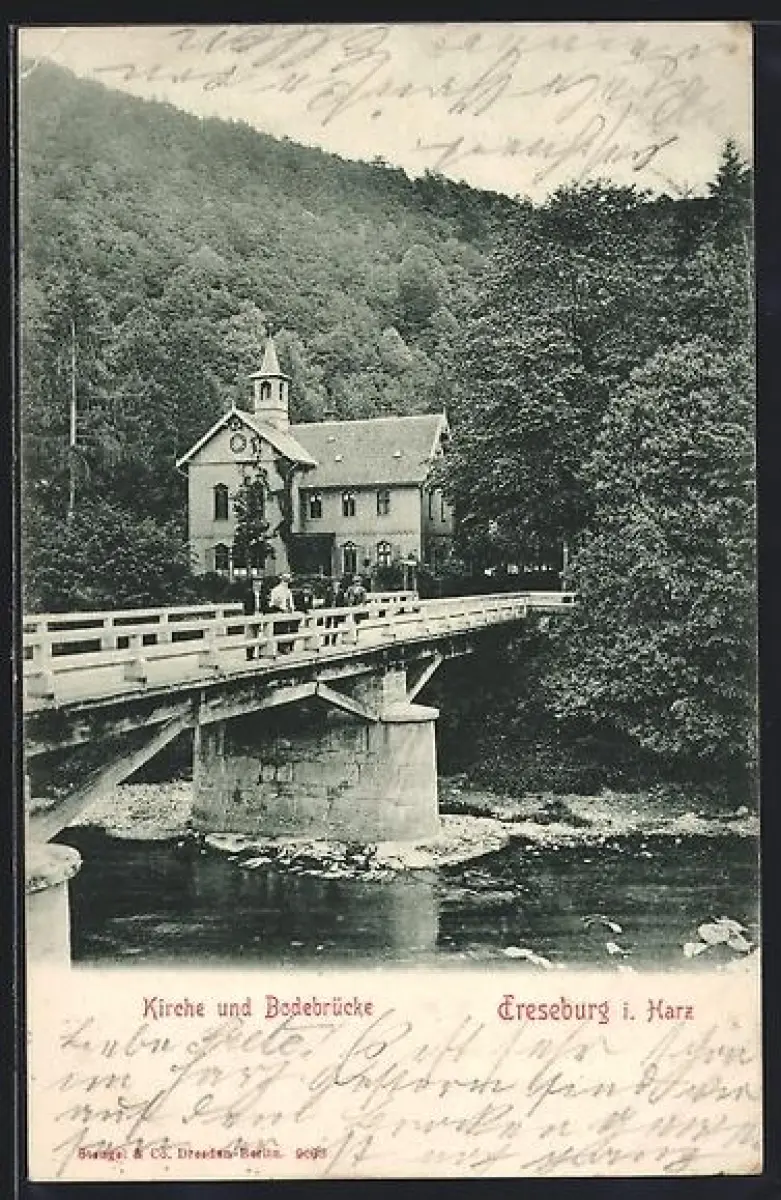 AK Treseburg i. Harz, Kirche und Bodebrücke