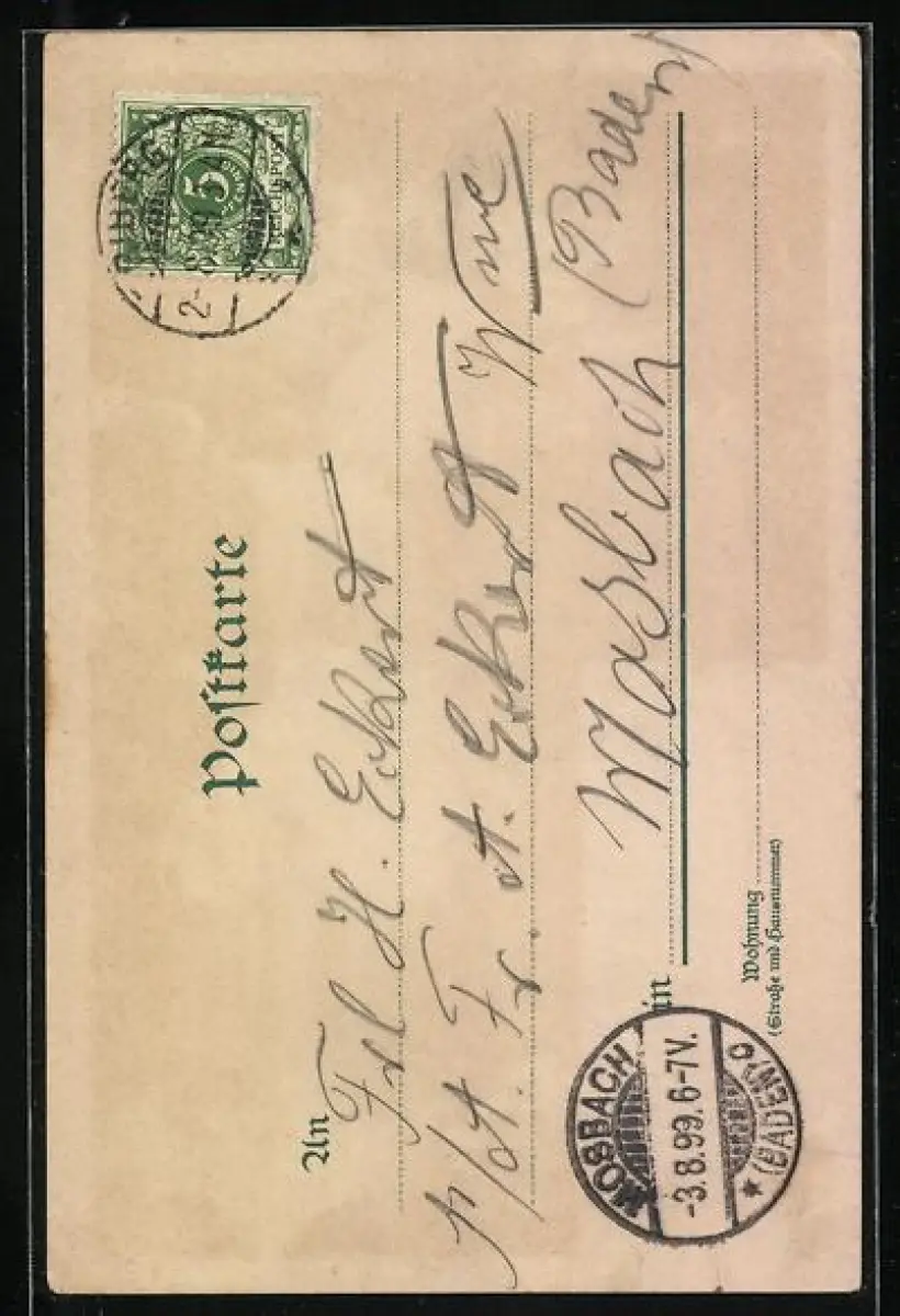 alte Ansichtskarte, gelaufen 1899, guter Zustand
