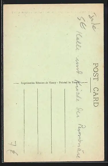 Personenbezogene Daten auf der Rückseite der Karte wurden durch blauen Textmarker unkenntlich gemacht. Die blauen Stellen sind auf die Vorderseite durchgeweicht und wirken sich negativ auf das Postkartenfoto aus