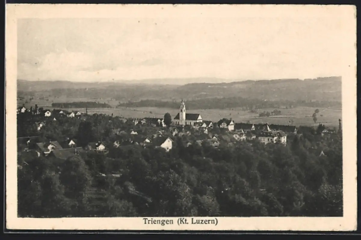 AK Triengen, Ortsansicht mit Kirche aus der Vogelschau