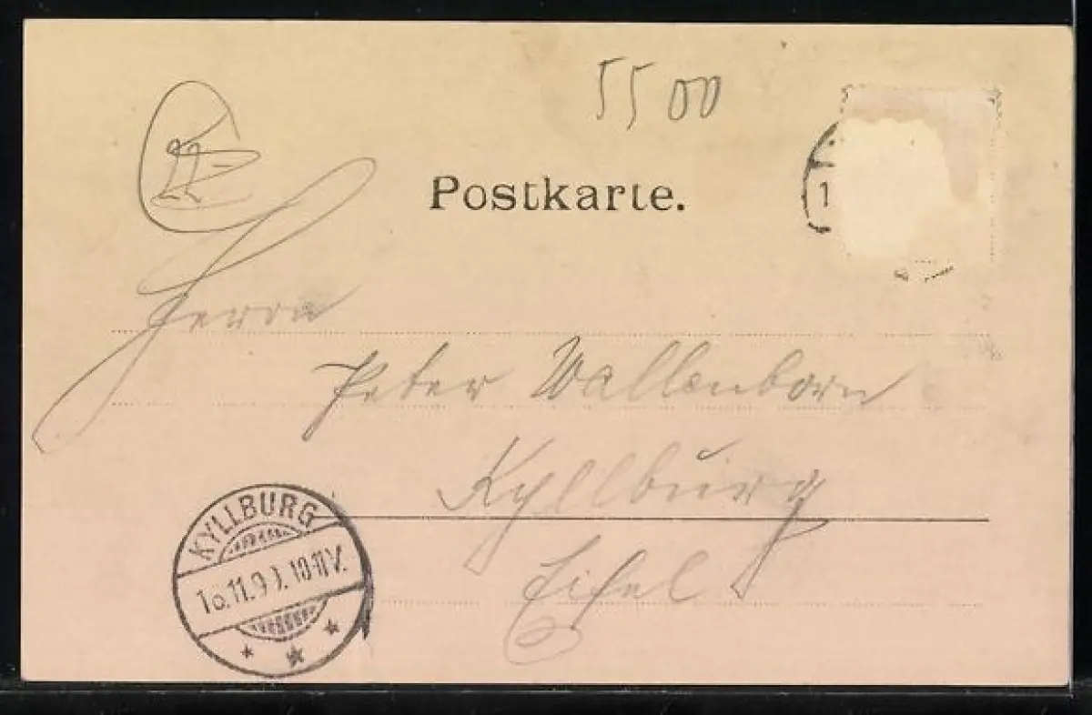 alte Ansichtskarte, gelaufen, Briefmarke entfernt, rückseitig Oberflächenschaden, guter Zustand