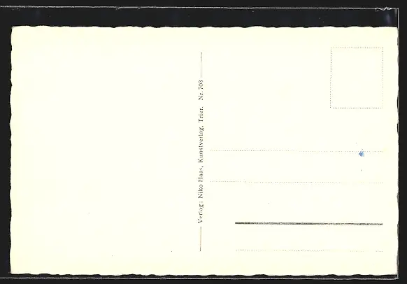 Personenbezogene Daten auf der Rückseite der Karte wurden durch blauen Textmarker unkenntlich gemacht. Die blauen Stellen sind auf die Vorderseite durchgeweicht und wirken sich negativ auf das Postkartenfoto aus