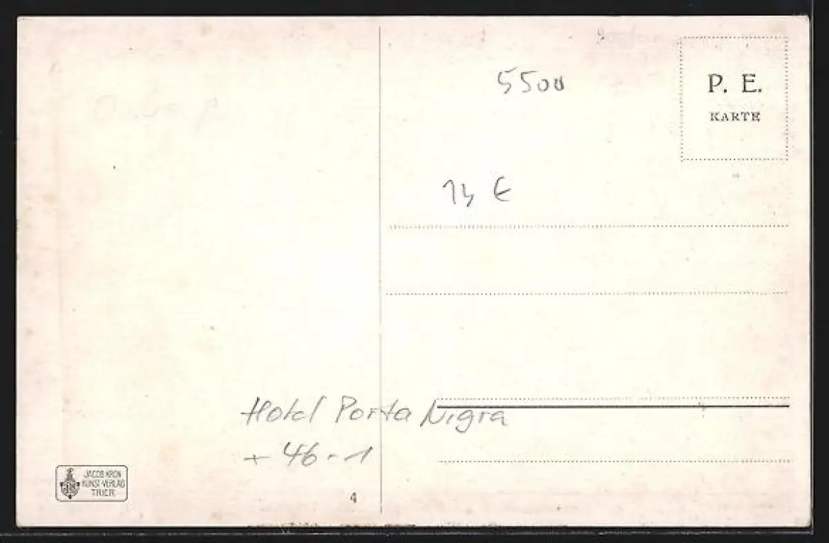 AK Trier, Hotel Porta Nigra, Strassenbahn