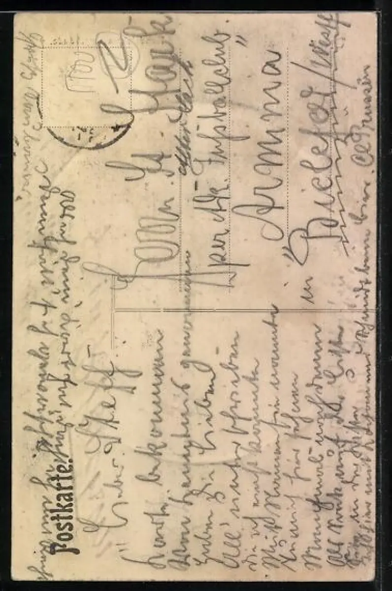 alte Ansichtskarte, gelaufen, Briefmarke entfernt, guter Zustand