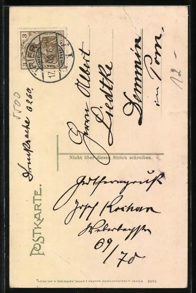 alte Ansichtskarte, gelaufen 1908, Eckknick unten rechts, Einriss links mittig, guter Zustand