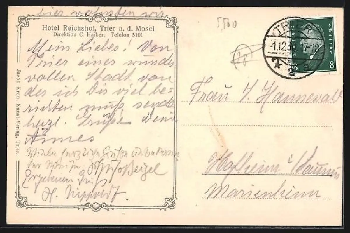 AK Trier a. d. Mosel, Hotel Reichshof, Dir. C. Haiber