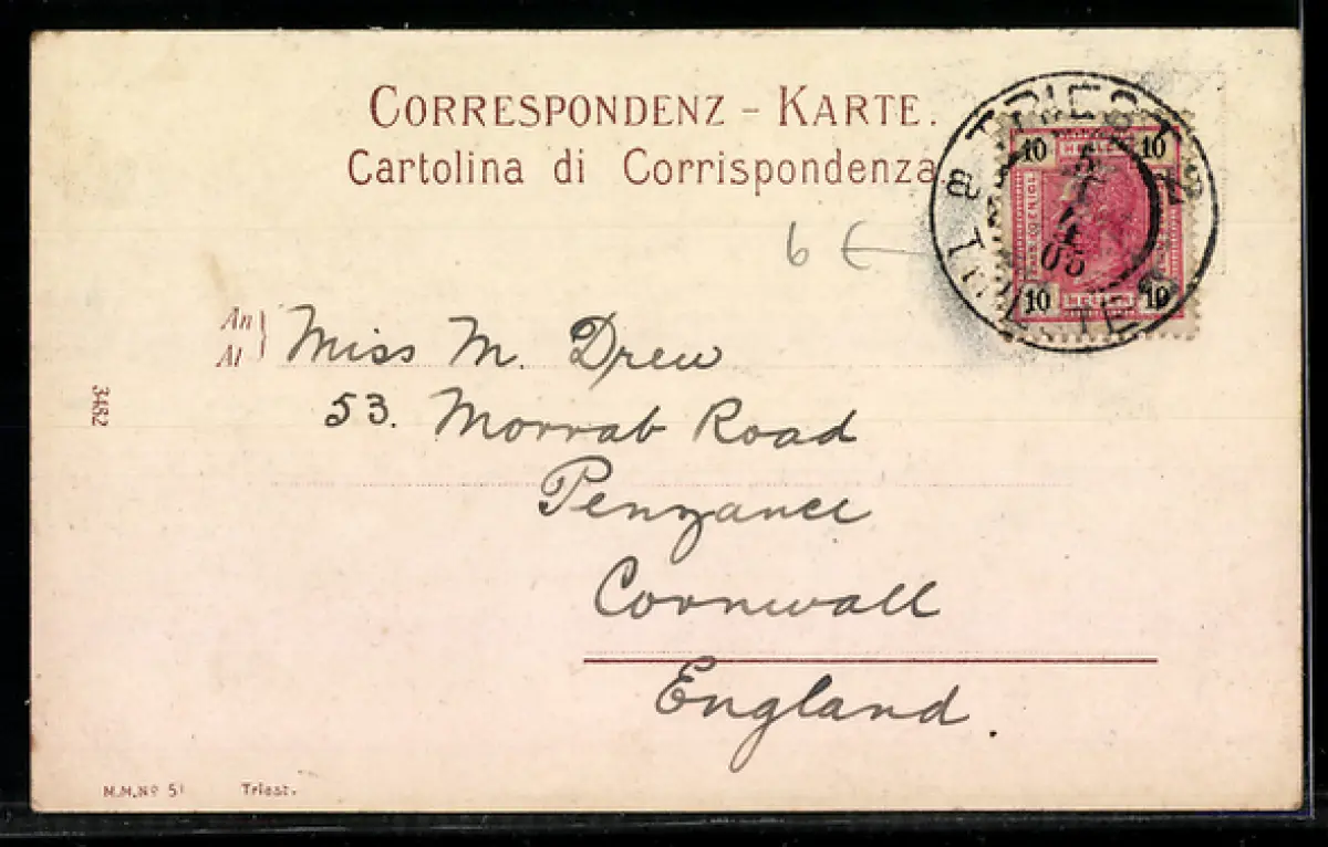 gelaufen 1905, Eckknick oben re., Stempelspur, guter Zustand