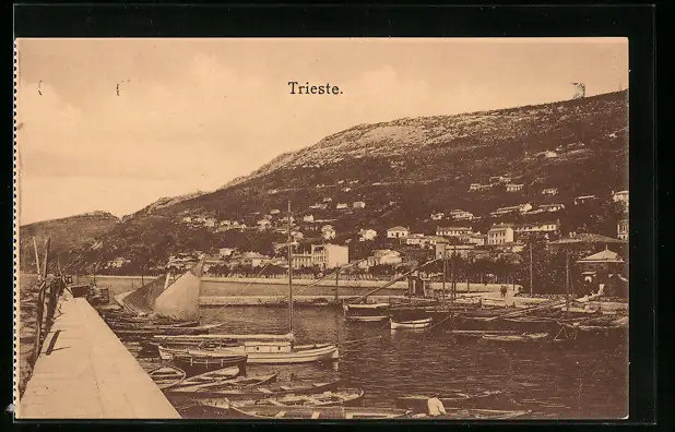 AK Trieste, Ortsansicht mit Blick über den Hafen
