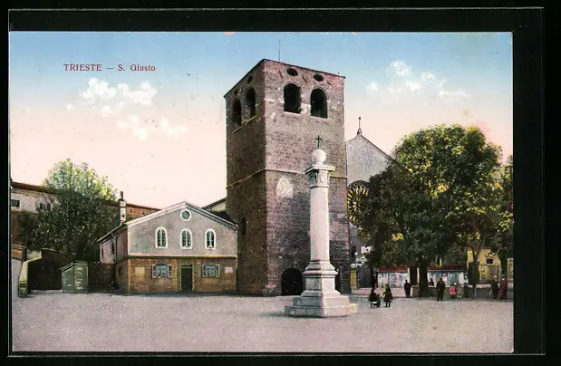 AK Trieste, S. Giusto, Platz mit Säule in der Mitte