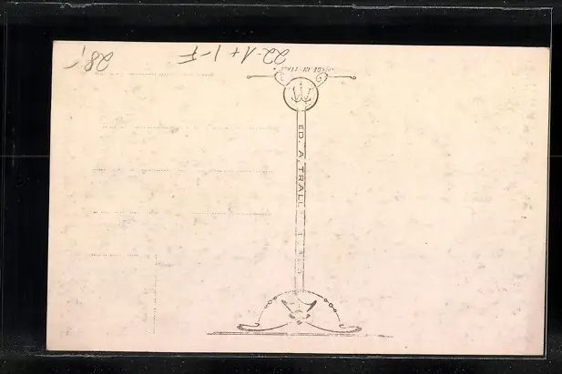 Personenbezogene Daten auf der Rückseite der Karte wurden durch blauen Textmarker unkenntlich gemacht. Die blauen Stellen sind auf die Vorderseite durchgeweicht und wirken sich negativ auf das Postkartenfoto aus