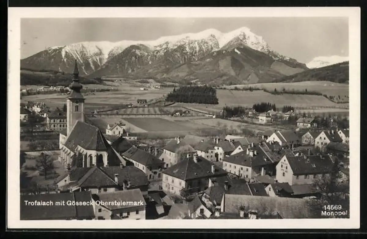 AK Trofaiach, Ortsansicht mit Gösseck aus der Vogelschau