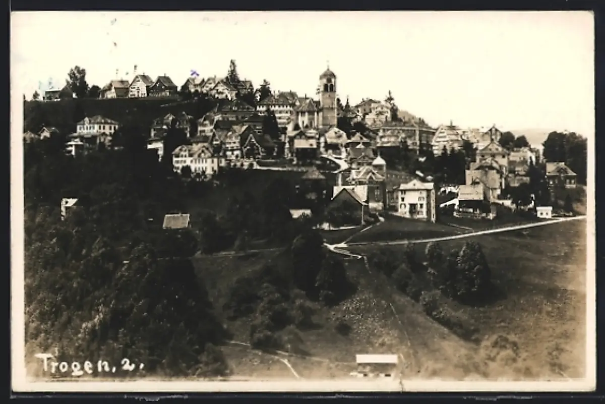 AK Trogen, Ortsansicht mit Kirche aus der Vogelschau