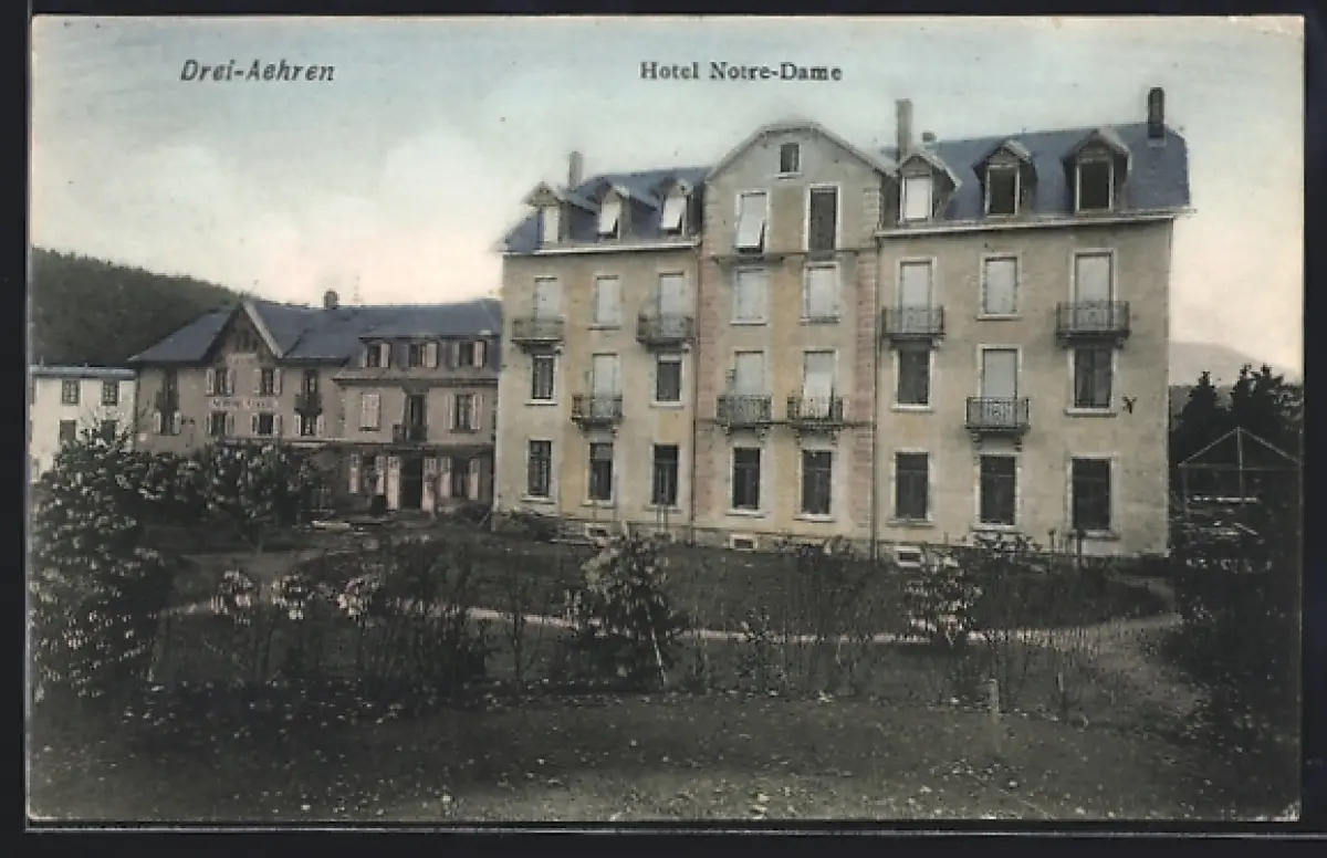 AK Trois-Épis, Hôtel Notre-Dame et jardin en facade
