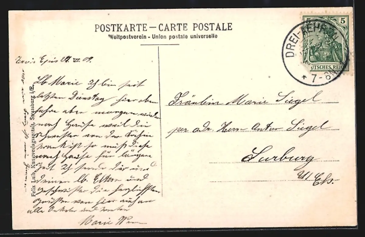 alte Ansichtskarte, gelaufen 1909, guter Zustand