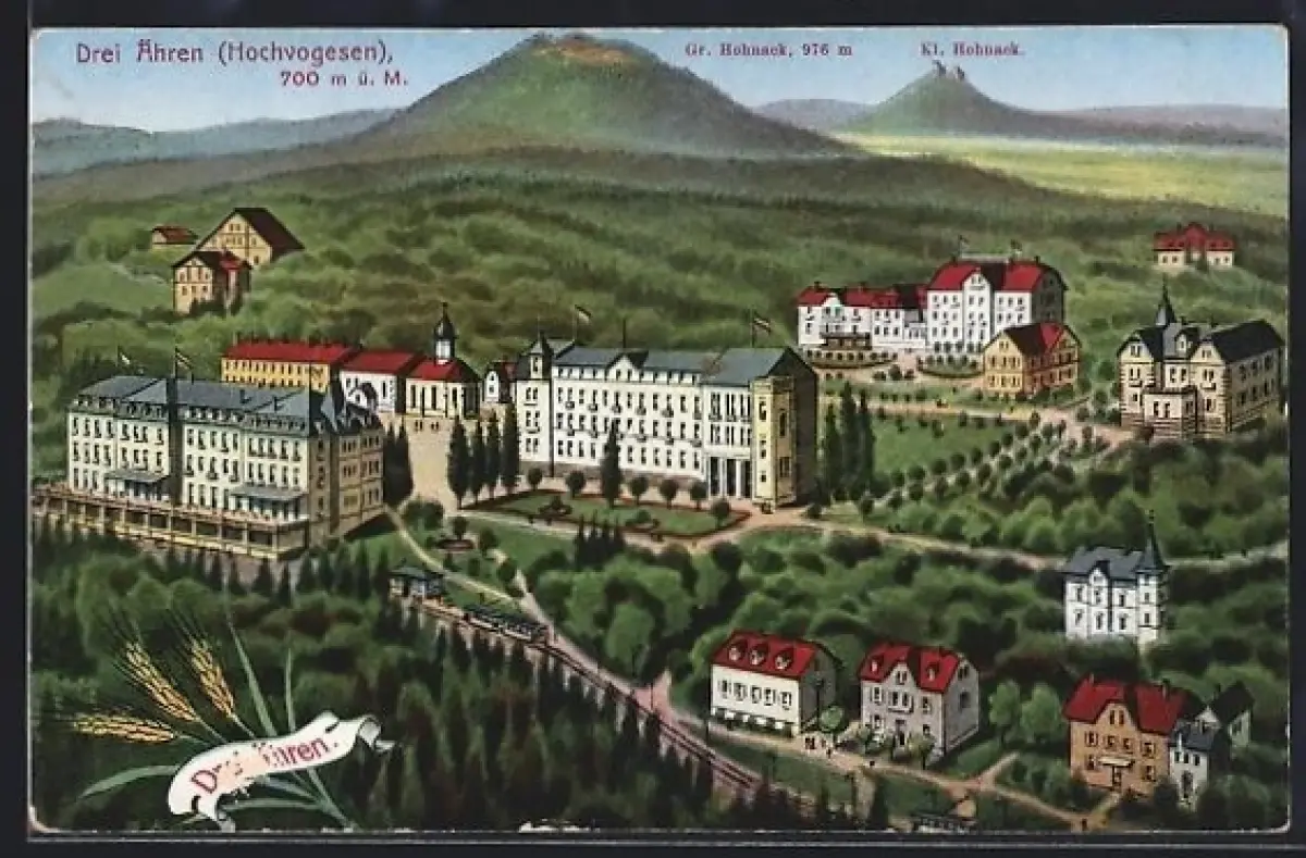 AK Trois-Epis, Ortspartie und Drei Ähren aus der Vogelschau